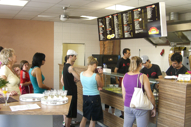 Zum Verzehr vor Ort in mediterranem Ambiente oder zum Mitnehmen: